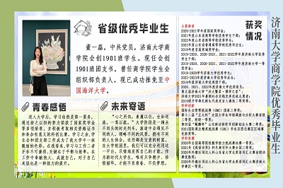 骊歌唱响,又是一年送别时。学院借助“榜样的力量”网站专项模块展,真情分享了宋健奖学金获得者董一磊、励志东营姑娘李甜等优秀毕业生代表的成功经验和精彩故事;借助“研途出硕果”官微专题推送展,全面呈现了会计1902、会计1905等考研优秀班集体在2022年研究生考试取得的优异成绩和突破成果;借助“保研荣誉榜”经管楼屏展,集中展现了33名优秀学子成功推免国内财经类重点大学的获奖荣誉和奋斗历程;借助“优秀毕业生”简历展板展,生动讲述了40余名优秀毕业生的四年记忆和毕业寄语......活动形式多样,异彩纷呈,得到师生广泛好评。