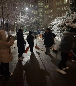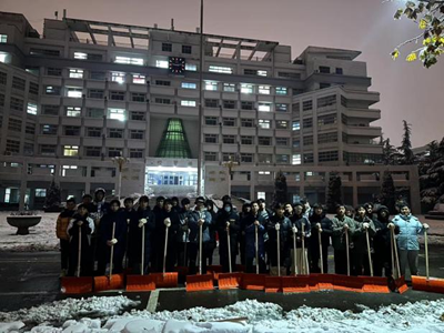 组织学院学生会、自律会、青协学生志愿者,协助后勤管理处的老师们,共同开展一场冬日铲雪活动,充分践行学生组织服务同学的宗旨,在风雪中为师生铲出一条条暖心路。