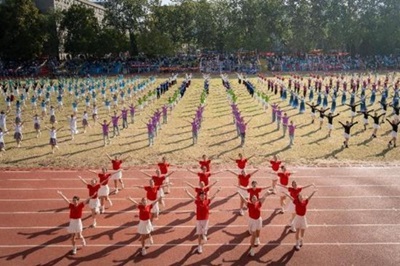 学生方阵和教师方阵迈着铿锵有力的步伐进入赛场。他们坚毅的面庞彰显出商院人坚韧不拔、昂扬向上和永不言败的精神。学生团体操演出中,同学们朝气蓬勃,动作整齐,配合默契,跟随音乐变换队形展现出了商院学子昂扬的精神面貌。