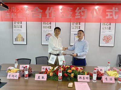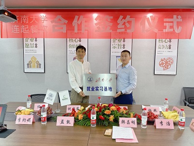 毕业生就业实习基地签约挂牌仪式。连起餐饮管理有限公司总经理韩昌明、执行副总孟凯、招商总监李浩、91热播