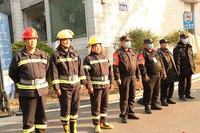 随着宿舍楼内消防警铃的响起,消防演练正式开始,楼管员在按响警铃后,快速持灭火器到达现场,按照“5、30、60”灭火处置程序迅速扑灭初起火灾,并拨打电话报警,打开东西两侧逃生门。同时,指定人员在三楼点燃烟雾弹,学生们在听到警报声后,迅速且有序地跑出宿舍,在楼管员和快速到达现场的老师的指挥下按照应急逃生预案程序沿各层楼梯靠墙一侧迅速有序疏散至一楼东、西、南侧出口。而校内安防人员接到报警后,迅速到达火灾现场,利用楼内消防设施—灭火器、室内消火栓打开消防水带展开灭火,帮助老师组织学生迅速撤离火灾现场,疏通楼外消防通道,保护火灾现场等工作。在逃生过程中,学生们做到了明确路线,迅速逃生,不拥不挤,有序撤离,并用自备的毛巾捂住口鼻,表示对演练的认真重视。逃生演练结束后,学生们在安全管理处消防科工作人员指导下分组进行模拟灭火实战演练。消防科工作人员也仔细认真地为学生们讲解如何正确使用消防工具,并对学生们的相关问题进行一一解答。