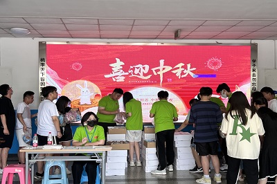 在经管楼大厅举办“明月寄相思,中秋团圆夜”月饼派送活动。
