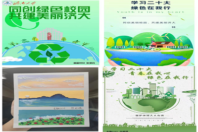 学生会组成的评委团评比打分选取优质作品。活动开始前,学生会成员借助网络平台进行线上宣传,有效扩大了活动的影响力,提高了同学们参与活动的积极性。活动中,面向广大同学们大力宣传绿色环保理念,使同学们在创作中提高绿色环保意识,弘扬绿色发展理念。本次活动的作品将绿色发展作为主要元素,同时将党的二十大精神融入其中,在极大程度上使理论学习“活”了起来。最终,评委团本着公平、公正、公开的原则,评选出一等奖3名,二等奖6名,三等奖9名,本次活动圆满结束。