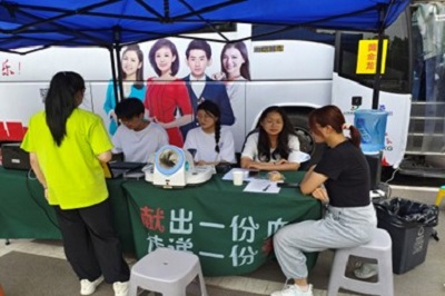 舜耕校区第六食堂门前举办了“汇聚热血力量,点燃生命之光”爱心无偿献血活动。本次无偿献血活动为期两天,在此期间同学们积极参与,活动顺利开展且获得了广泛好评。