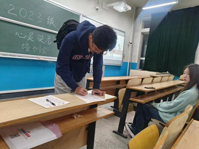 心理协会针对学院各班级心灵使者举办了心灵使者培训活动。