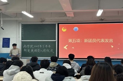 新发展团员代表杜宇随后发言,号召大家脚踏实地、积极进取,以团员标准严格要求自己,做德智体美劳全面发展的时代新人。仪式在全体起立奏唱中国共产主义青年团团歌中圆满结束。