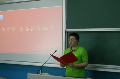 团委书记陈淑云宣布仪式正式开始,优秀团员代表姬鹏飞宣读新发展团员名单。