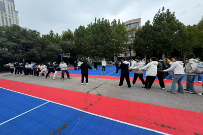 于舜耕校区篮球场成功举办本科生新生拔河比赛。本次活动由学院自律会承办,吸引了广大新生踊跃参与。