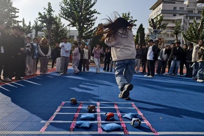 团委主办、研究生会承办的“技能四子棋”趣味竞赛在舜耕校区室外篮球场顺利举行。