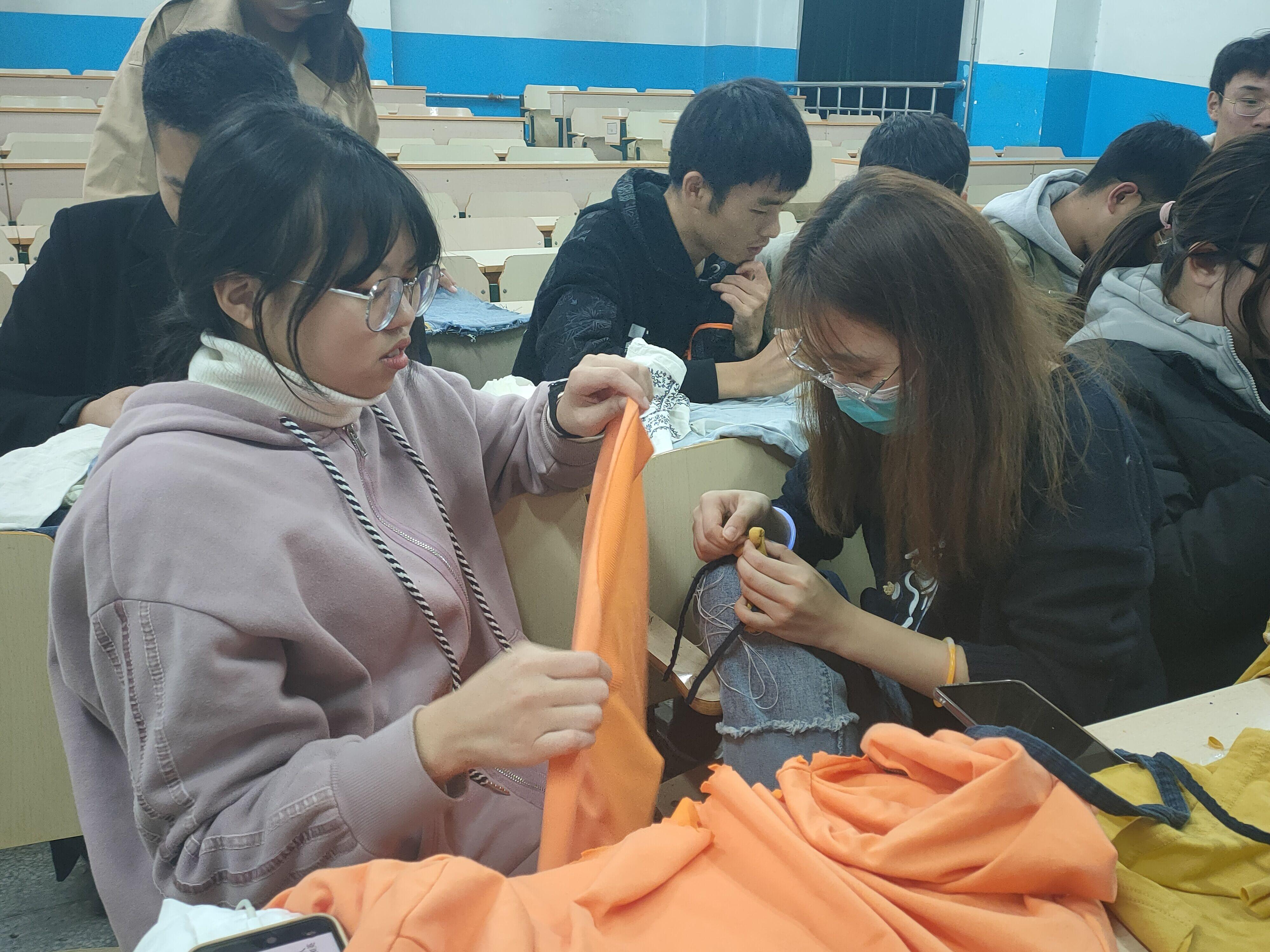 青年志愿者协会的志愿者们在将衣物进行分拣、收纳、标识后,捐赠给了舜玉基地、大观园基地和同心互惠组织,并预留出一部分衣物,通过旧衣改造的形式,为同学们提供了一个可以肆意发挥创意的空间,同学们根据自己的想法设计草图,将旧衣物按照设计图纸进行裁剪、缝制,将衣物原有的结构并通过新的形式展现出来。活动期间,出现了不少别出心裁的设计作品,有的同学将长衬衫剪短后搭配撞色的领带,令原本呆板的衬衫变得设计感十足;有的同学将衣服剪成小块的布料再折叠成形状漂亮的蝴蝶结使其可以被进一步加工成发卡或者胸针;有的同学将款式比较老旧的短袖做成休闲时尚的布袋,无论是日常通勤还是上课上班都可以用它搭配。最后,大家将改造好的衣物进行打包,由91热播