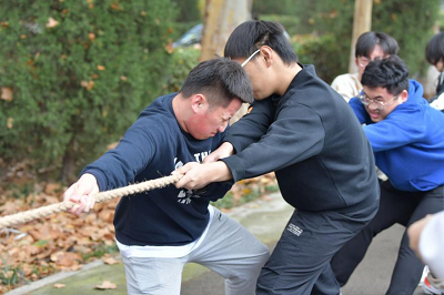 活动当天,全体人员准时集合完毕,举行开幕式,主持人宣布比赛规则,参赛队员和裁判代表进行宣誓。紧接着精彩的舞蹈表演,让同学们士气高涨。同学们的表现深刻贴合“团结拼搏争创佳绩,拔河比赛勇夺第一”的口号,欢呼声与加油声伴随着比赛不断喊出。本次比赛共三轮,分别是一轮十六进八、二轮八进四以及最后一轮产生前三强。在比赛最后,坚持着公平公正公开的原则选出优秀组织奖。比赛期间,“一二一”的口号声直冲云霄,同学们信心满满,重心下压,齐心协力拉着绳子向后扯。