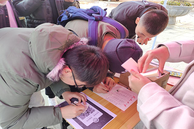 青年志愿者协会在经管楼前举办了“治愈纸条,温暖初冬”活动。