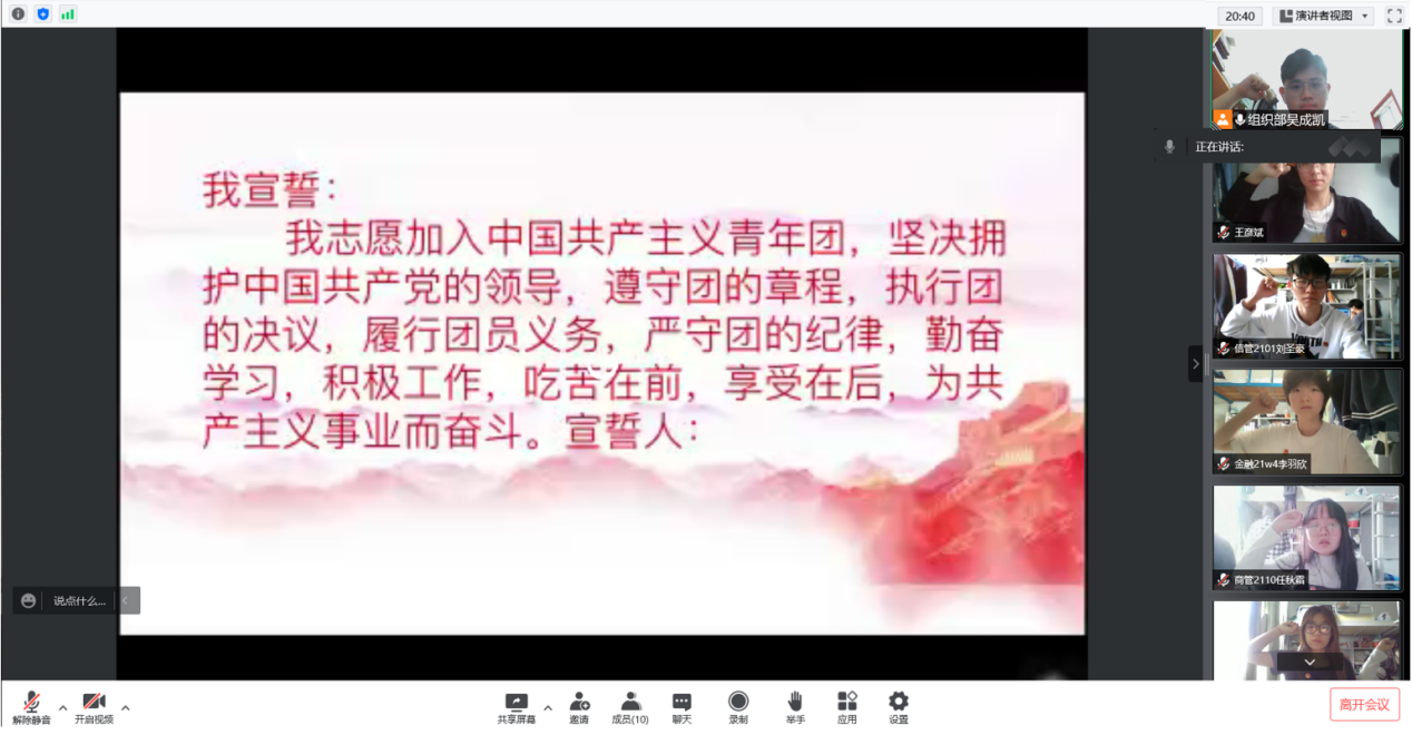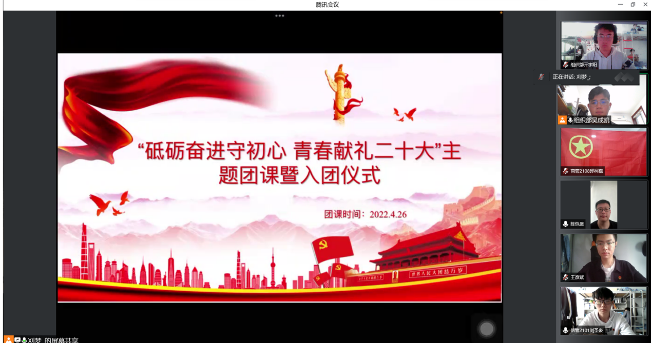 于4月26日下午开展了“砥砺奋进守初心 青春献礼二十大”线上主题团课暨入团仪式活动。
