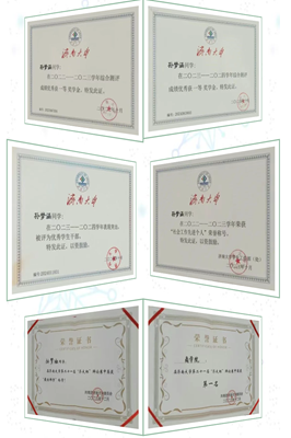 一等奖学金、校优秀学生干部等荣誉。