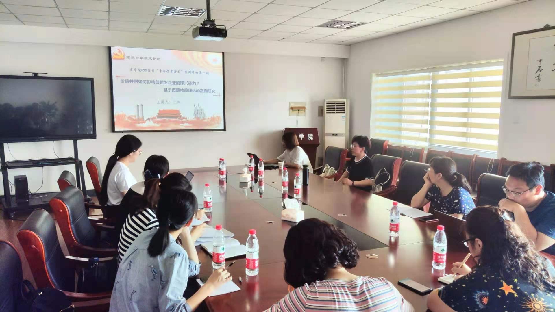 王琳博士以论文《价值共创如何影响创新型企业的即兴能力?—基于资源依赖理论的案例研究》为例,从研究意义、研究内容以及写作的心得体会进行阐述。讨论过程中,王琳博士以生动的个人案例和深入浅出的语言和大家交流了自己多年深入企业调研、搜集写作案例、撰写论文的过程、心得和经验。青年教师们纷纷就自己在科研方面的困惑进行提问与交流,现场气氛轻松热烈,与会教师表示受益匪浅。