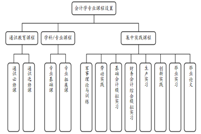 其中,通识教育类课程包含主要包含《思想道德修养》《中国近现代史纲要》《马克思主义基本原理概论》《毛泽东思想和中国特色社会主义理论体系概论》《大学英语》《大学体育》《大学写作》《大学计算机》《职业生涯指导与创业基础》《四史》以及通选课,占总学分的30.9%,着重培养学生德、智、体全面发展,热爱祖国,关爱民生,具备逻辑思考与判断分析的能力,提高写作水平和表达能力,关注国内政策和国际形势,提高对科学、艺术的欣赏品位,做好未来职业规划,妥善处理人际关系,培养高尚的职业道德。专业基础课程包含《高等数学(一)》《高等数学(二)》《线性代数》《概率论与数理统计A》《专业导论》《微观经济学》《宏观经济学》《管理学》《数据库原理与应用》《基础会计》《会计职业道德》《Python基础》《会计信息系统》《财务管理学》《中级财务会计》《管理会计》《税法》《审计学》《高级财务会计》等课程,占总学分的39.6%,旨在培养学生掌握会计学专业的基本理论和基本方法,为学习专业课程奠定扎实的理论基础,专业课主要是系统培养学生的有关会计、审计等具体业务的方法和技巧,熟悉国内外会计学的动态和发展趋势,提高学生分析和解决会计问题的基本能力,使其具备从事本专业实际工作的能力。专业拓展课包括《经济法》《金融学》《公司战略与风险管理》《金融会计》《统计学》《计量经济学》《大数据与智能会计》《财务决策系统》等,占总学分的17.2%,主要培养学生专业知识提升、智能会计和综合应用能力。集中实践课程主要包括基础会计模拟实习、财务会计模拟实习等,占总学分的12.3%,主要培养学生单项实践能力和综合实践能力,提高学生的就业创业能力。