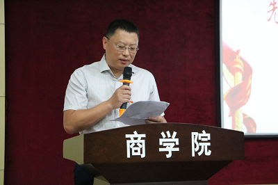 在经管楼报告厅隆重举行“七一”表彰大会。学院领导班子成员、各党支部书记、各系主任、各职能部门负责人、全体辅导员、学院2023年度新发展党员、部分入党积极分子代表以及受表彰的组织与个人参加会议。学院党委副书记、副院长袁海占主持会议。