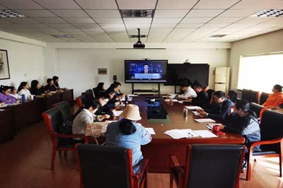 党委理论学习中心组进行集体学习,学院党委书记彭亚宁主持学习会。学院党委理论学习中心组成员、各系主任、支部书记、全体科级干部参加学习。