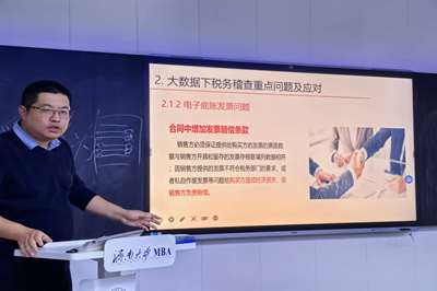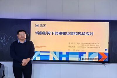 MBA中心成功举办《当前形势下的税收征管和风险应对》讲座。此次讲座由中汇税务师事务所有限公司山东区域负责人李帅主讲,他身兼注册会计师、税务师、律师等多重身份,具备深厚的专业知识。讲座旨在让2024级MBA全体同学深入了解当前税收征管的形势,有效防控涉税法律风险。