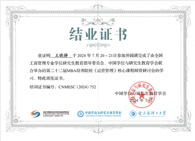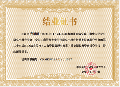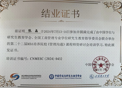 继续推荐骨干教师参加由中国学位与研究生教育学会、全国工商管理专业学位研究生教育指导委员会、中国管理案例共享中心等主办的MBA教育师资研讨会。朱瑾、张彩霞、徐静、邢丽云、孙丽丽、王晓静、张晶等7位教师参加了《组织行为学与领导力》、《企业伦理》、《人力资源管理与开发》、《运营管理》、《管理沟通》等课程的师资培训和国际化案例开发培训会。