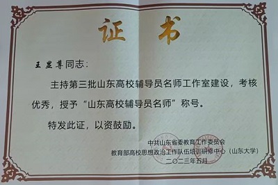 辅导员王显尊副教授被授予“山东高校辅导员名师”称号。